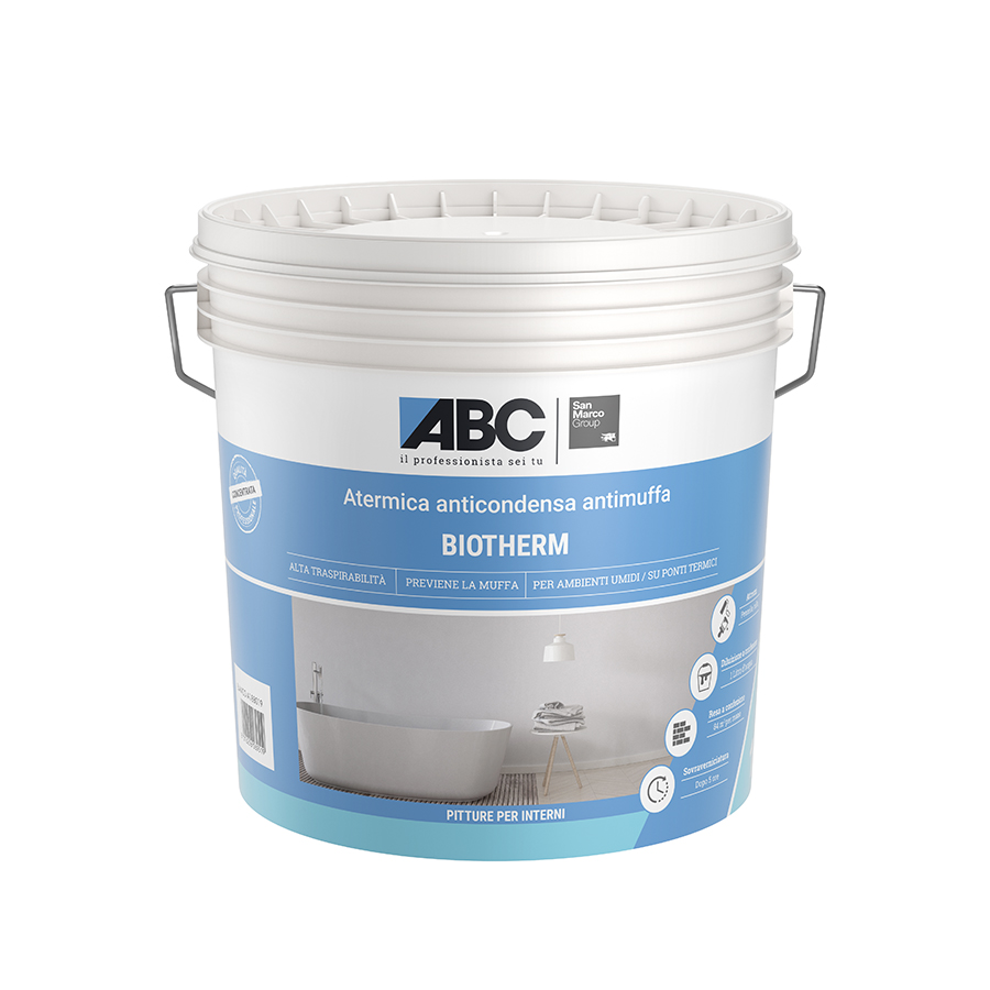 BIOTHERM is a breathable wall paint for indoor use based on hollow glass microspheres that contribute to the improvement of the thermal insulation of the walls by reducing the formation of condensation caused by the temperature difference between the indoor air of the room and the wall. It prevents and contrast the formation of mold in areas with high humidity or subjected to heavy condensation, as kitchens, bathrooms, basements, laundry rooms etc.