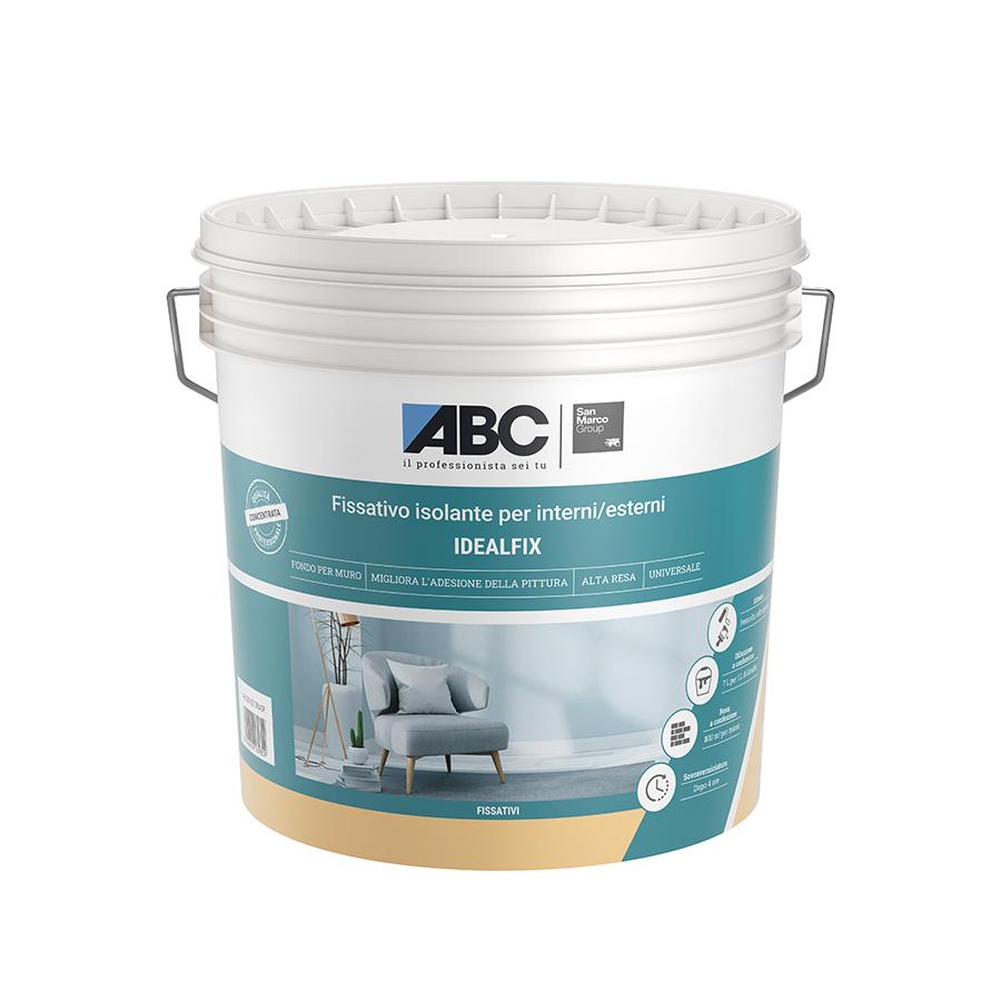 IDEALFIX is an acrylic wall fixative for outdoor and indoor use. It consolidates the surface and evens out the absorption. It is recommended for all paint cycles indoor, it can be used outdoor when the support is in good condition and slightly chalking.