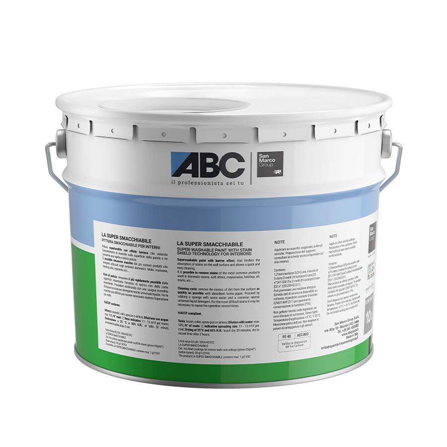 Matt wall enamel for interiors with barrier effect, that hinders the absorption of stains on the wall surface and allows a quick and easy cleaning.