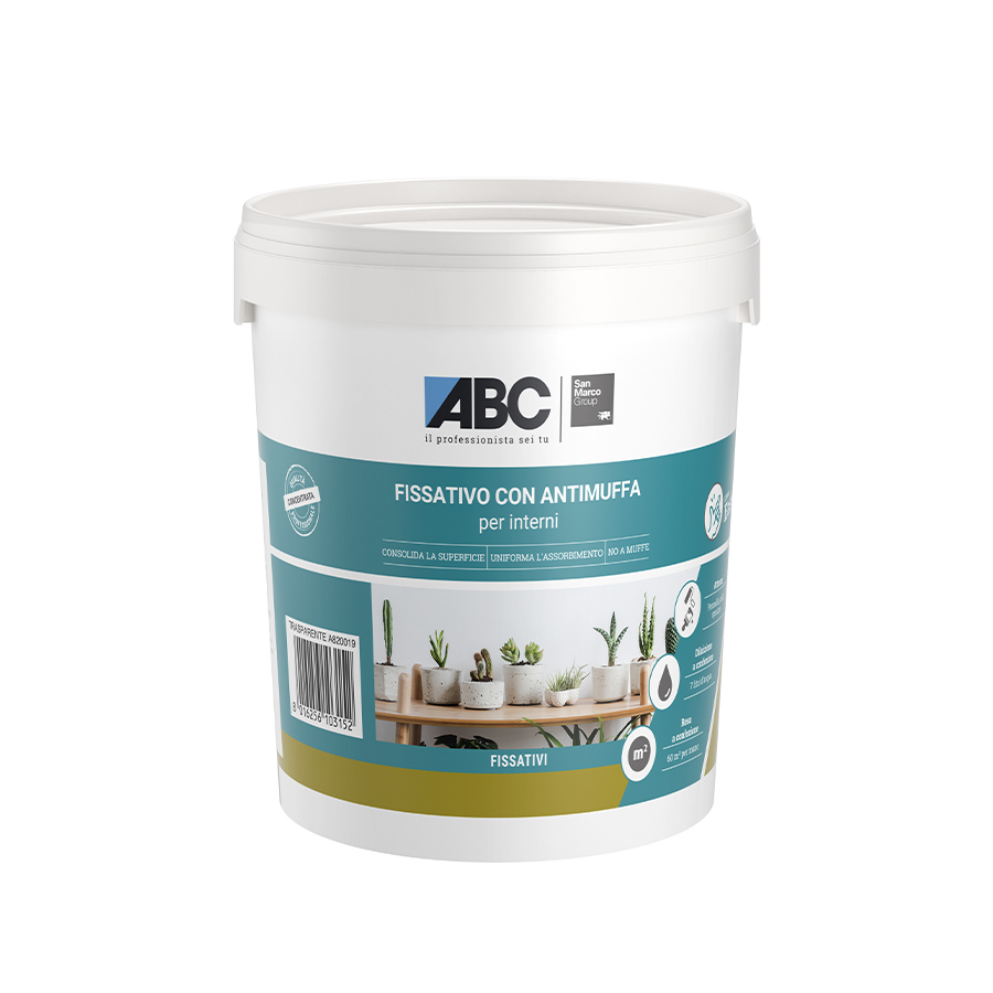 Water-based fixative with anti-mold for the preparation of the surface for interiors.