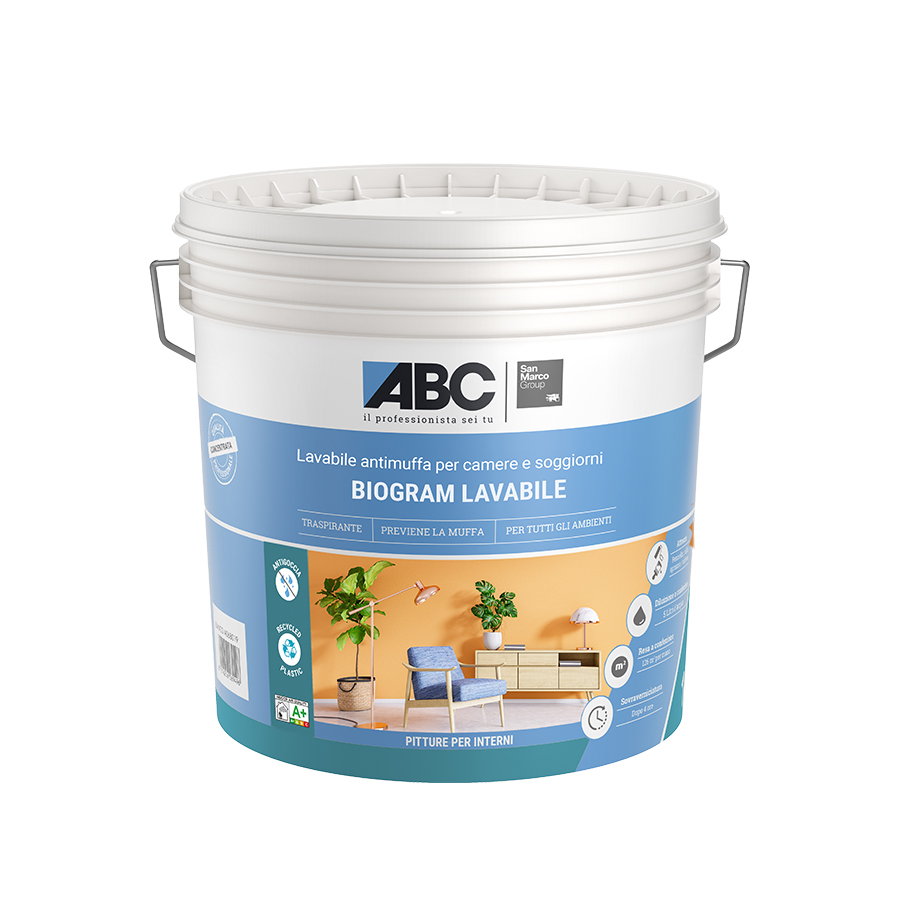 BIOGRAM LAVABILE is a walpaint for interiors with a super-matte finish. Equipped with a uniforming power, high whiteness and anti-drop.
